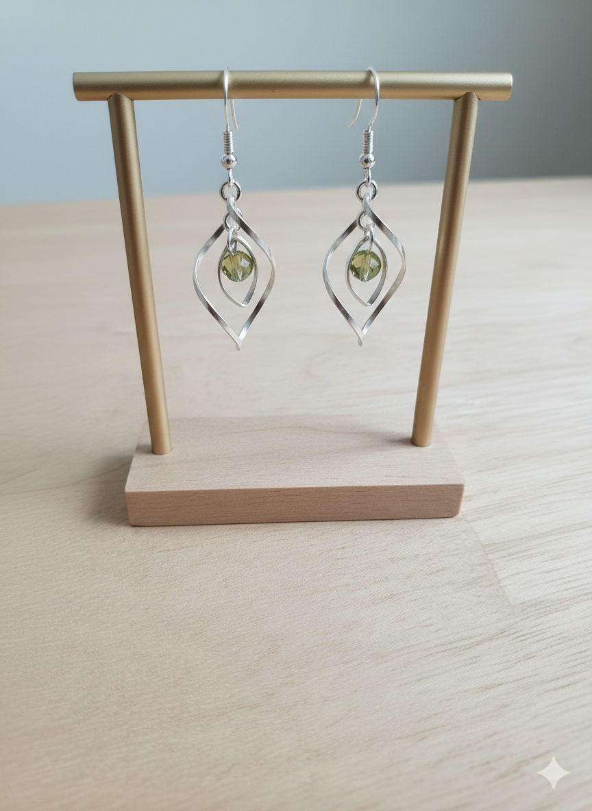 El contraste entre el tono plateado y el verde profundo del cristal los convierte en el accesorio ideal para iluminar el rostro. Son pendientes ligeros, perfectos para quienes buscan elegancia sin sacrificar la comodidad durante todo el dÃa. Su estilo atemporal los hace aptos tanto para un evento especial como para elevar un atuendo de oficina.